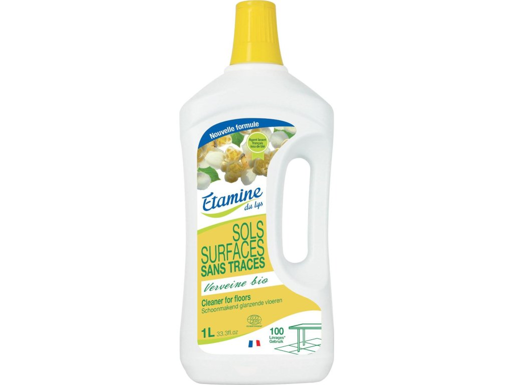 Čistič s přírodní vůní a s certifikací ECOCERT Greenlife umyje nejen podlahy, ale také pracovní plochy, materiály z PVC, imitace kůže či kameniny. Poslouží také jako odstraňovač skvrn na koberci.