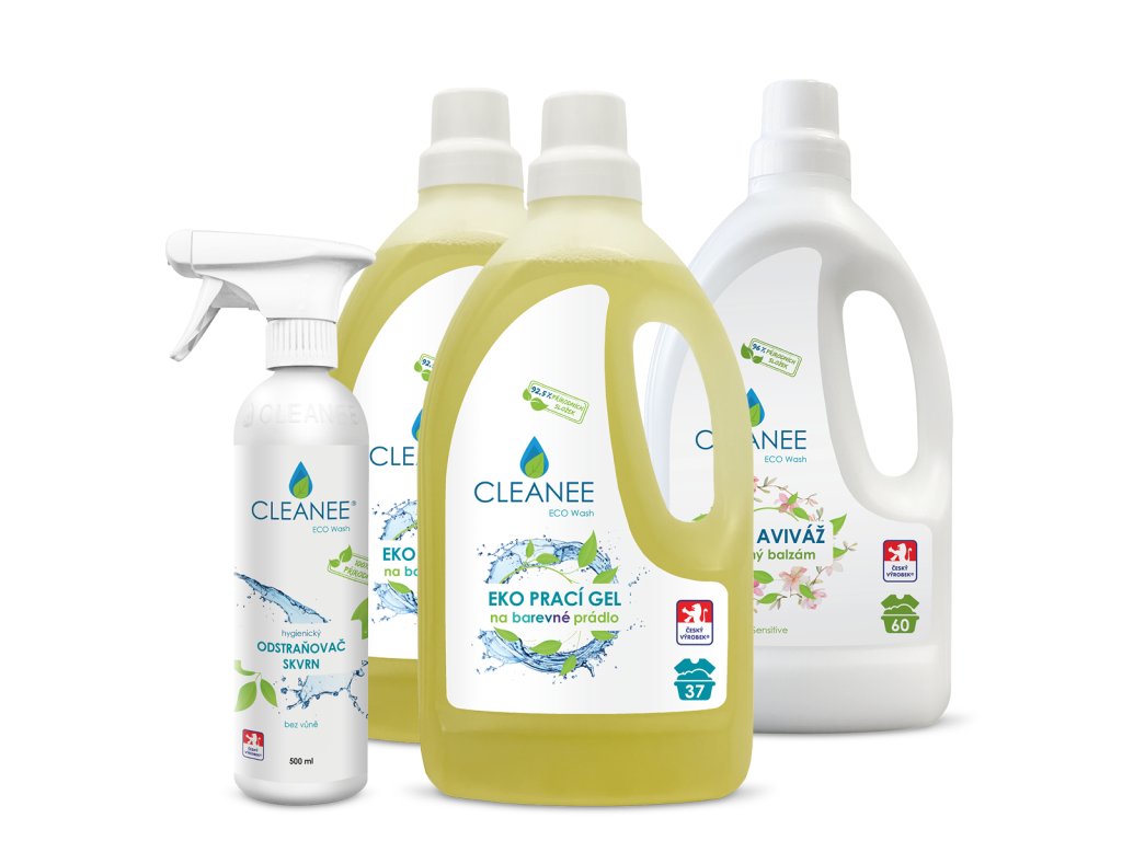 Jak produkty používat? Na silně znečištěné prádlo nebo na skvrny aplikujete ECO Odstraňovač skvrn, nechte chvíli působit. Poté vložte s ostatním prádlem do pračky a do přihrádek na prací gel a aviváž nalijte přípravky dle znečištění a dle potřeb změkčení a vůně. Doporučené dávkování naleznete na obalu nebo u jednotlivých produktů na eshopu cleanee.cz. Pro ekologické používání pračky při praní doporučujeme pouštět pračku, když je opravdu plná a zvolit prací program EKO. Spotřebuje se méně elektrické energie i spotřeba vody bude pro prací cyklus minimální.