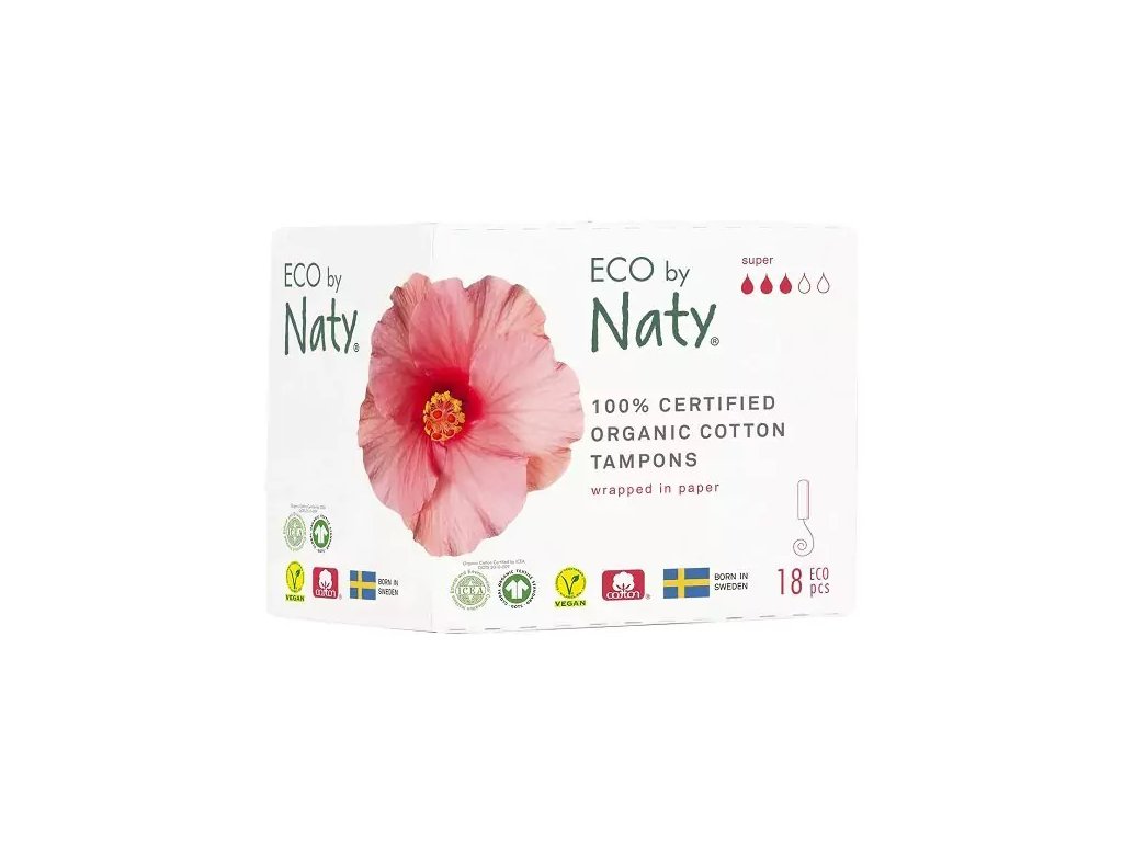 Nové, vylepšené tampony se skládají kompletně z organické bavlny. Jejich povrch navíc pokrývá bezpečnostní pláštík, díky kterému se vlákna z tamponu neuvolňují, a drží celý váleček bavlny lépe pohromadě. Jistě vás potěší i individuální papírové balení, které nahrazuje dříve využívaný plastový obal. Tampony Eco by Naty se teď snadněji kompostují a jejich používání je ještě příjemnější.
