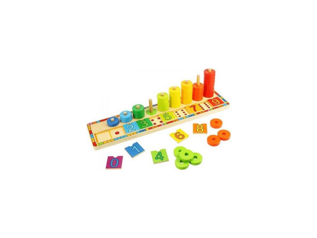 Poškozený obal. Nové zboží bez závad. Vaše děti budou milovat tuto velmi aktivní hračku, která obsahuje spoustu barevných disků, které se dají nasouvat na sebe po dřevěné tyčce, a číslic, jež se vkládají do dřevěné destičky.Ideální pro rozvíjení zručnosti, koordinaci a samozřejmě máte i možnost rozvíjet v dítěti jeho vztah k počítání.Hlavní vlastnosti: rozvíjí motoriku dětí a koordinaci pohybůnaučí děti rozlišovat tvary, barvy a číslapodporuje logické myšlení dětí hravou formou
