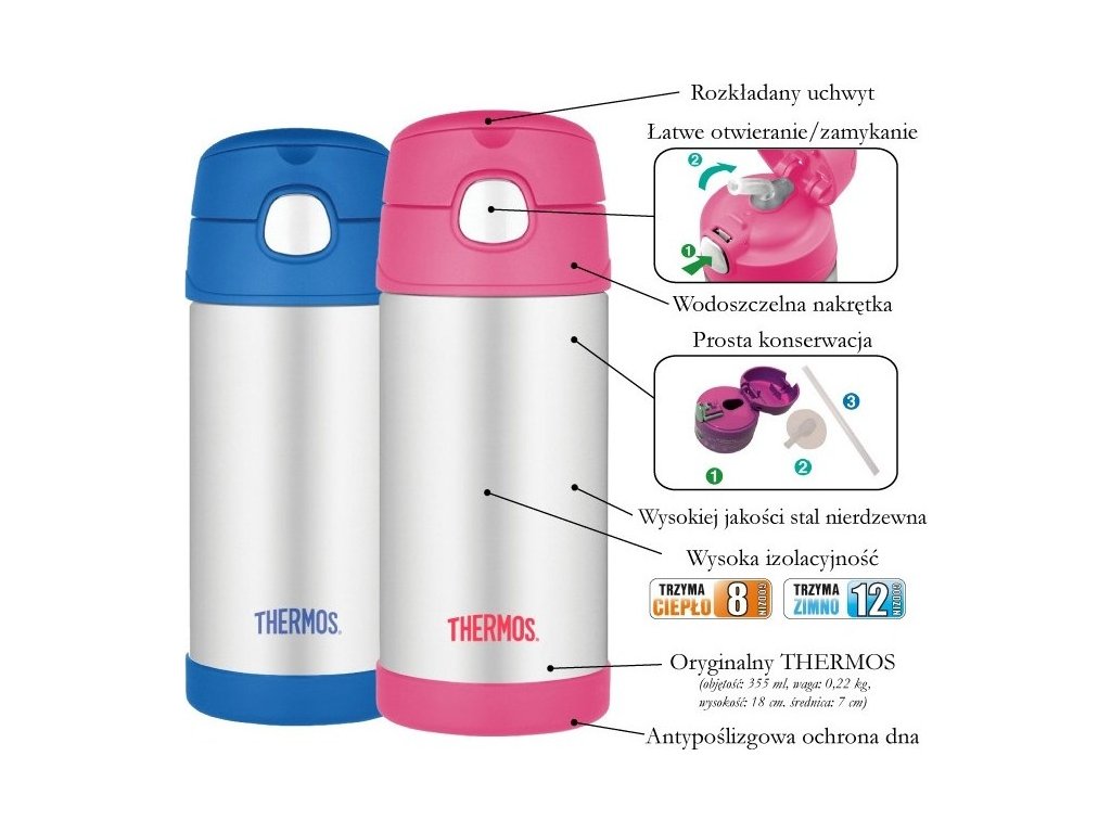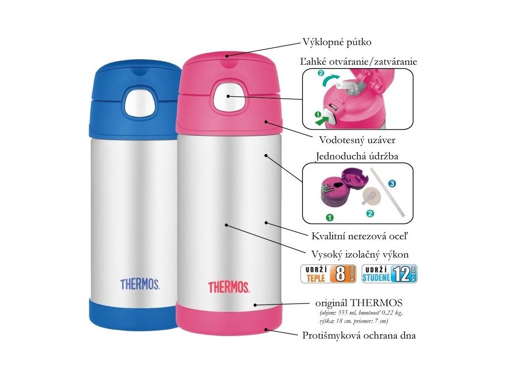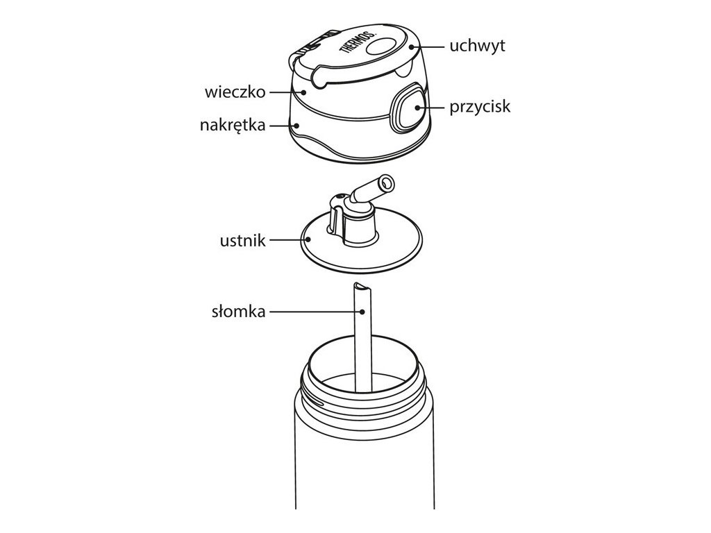 Teplé a studené nápoje se pijí přímo z termosky - bez nalévání do šálku. Nápoj se pije pomocí brčka - není nutné naklánět termosku.