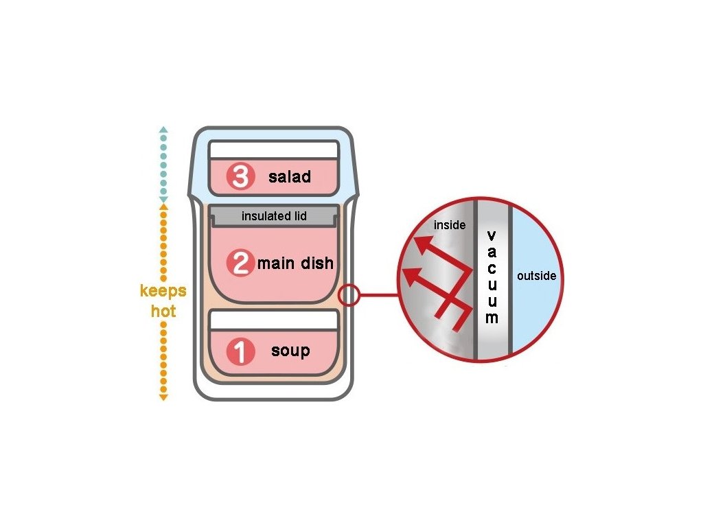 Jídlonosič pro děti se skládá ze tří oddělených nádob, které se vkládají do nerezového vakuově izolovaného těla jídlonosiče. Spodní nádoba je určena na polévku, prostřední nádoba na hlavní jídlo (např. rýže, těstoviny) a horní nádoba na salát či přílohu. Spodní dvě nádoby jsou tepelně izolovány. Horní nádoba je bez tepelné izolace. Všechny tři nádoby jsou vyrobeny z kvalitního BPA free materiálu. Nádoby je možné vložit do mikrovlnné trouby či do myčky na nádobí. Jídlonosič je doplněn o pouzdro s popruhem pro snadné nošení.