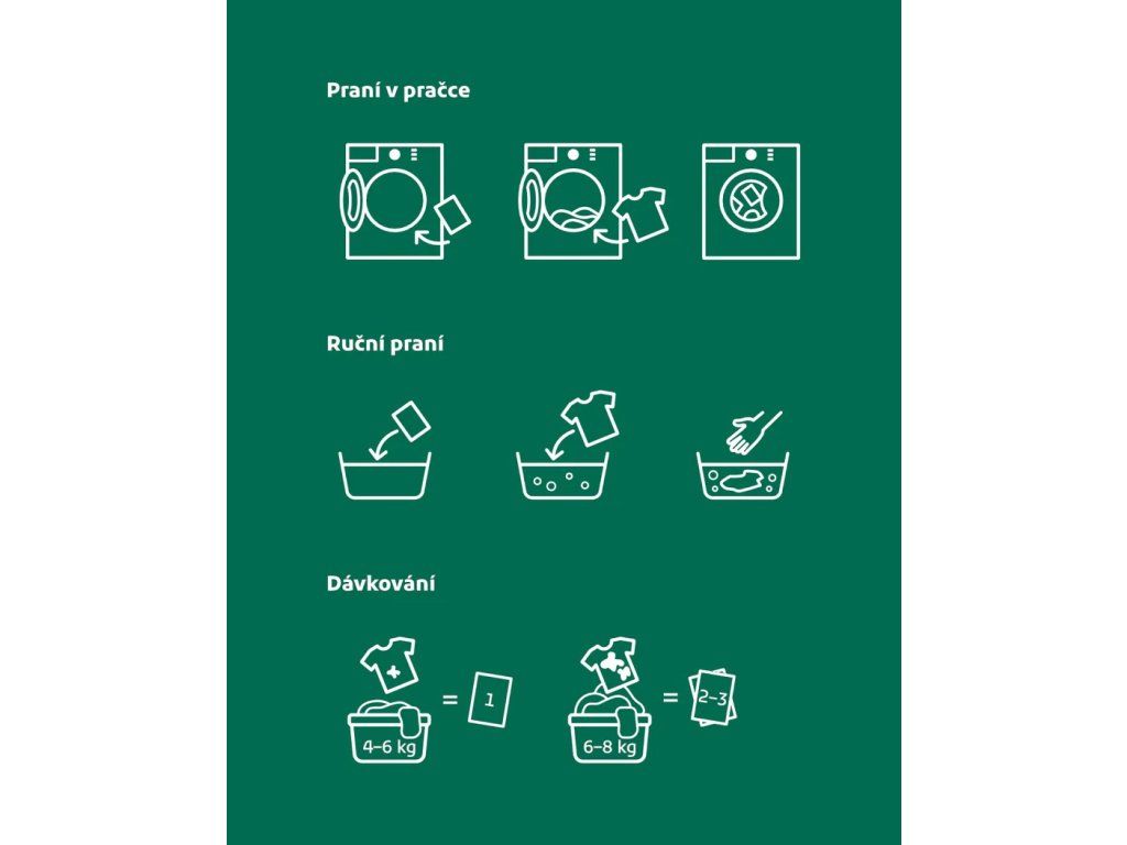 - Balení obsahuje 60 pracích papírků na 60 praní