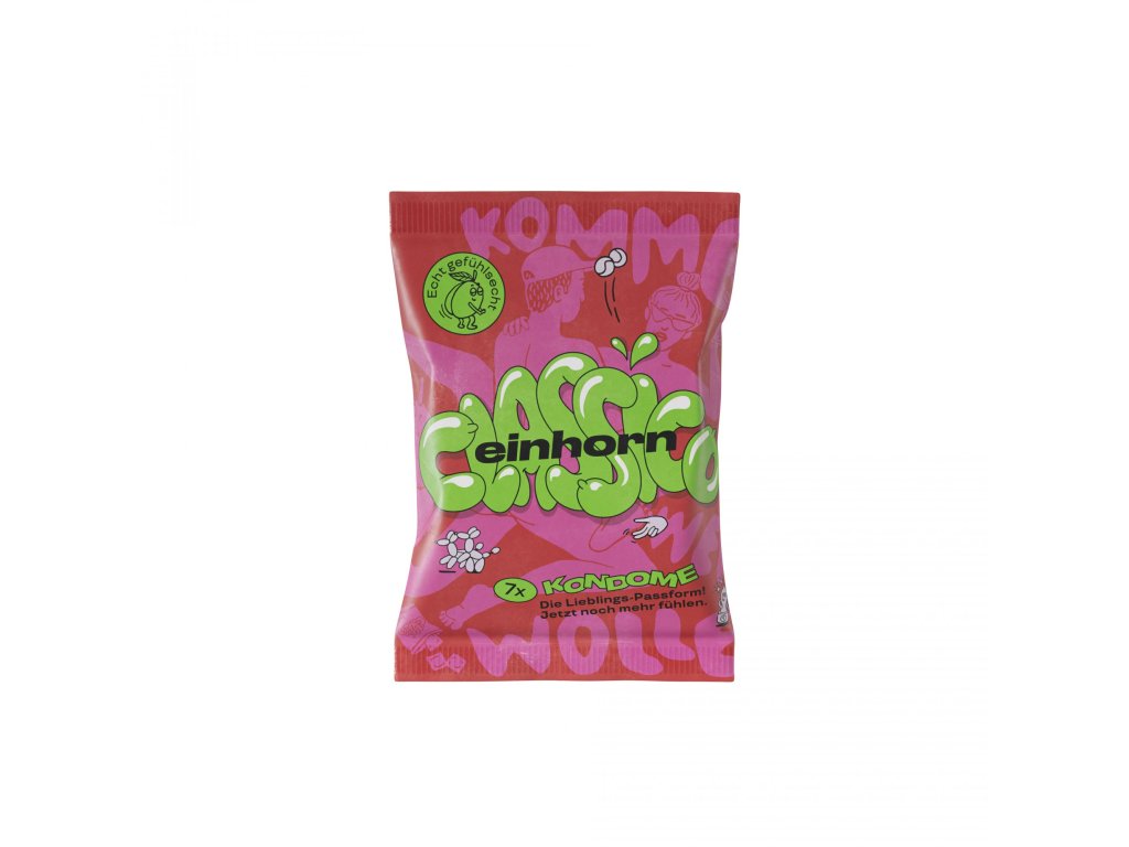 Kondomy? Ty v Einhornu umí. Tyhle vyrábí ve standardní velikosti, z přírodního latexu a s mírným rozšířením kolem žaludu pro příjemnější prožitek. Kaučuk si vybrali udržitelný, od drobných farmářů v Thajsku.