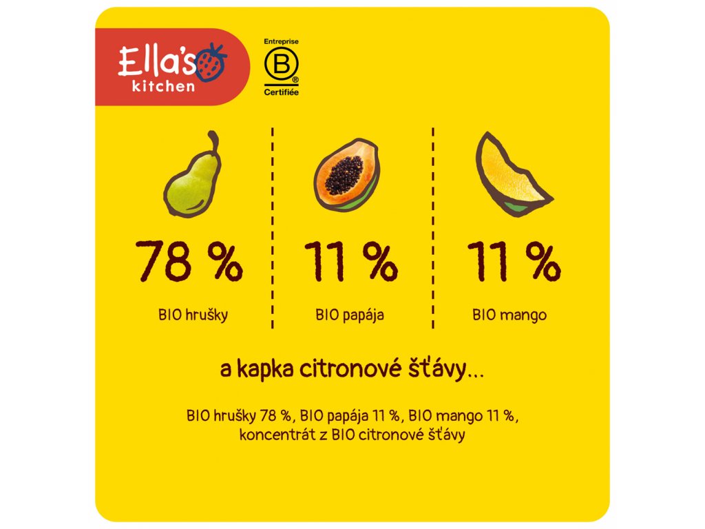 Ella's Kitchen je britská značka zdravých dětských potravin, speciálně určených pro kojence a batolata. Zaměřuje se na výrobu potravin z organických surovin, což znamená, že věnuje velkou pozornost kvalitě a čerstvosti ingrediencí. To pomáhá zajistit, že produkty jsou bezpečné a zdravé pro nejmenší děti. Značka se snaží minimalizovat použití umělých přísad, jako jsou barviva, konzervanty nebo umělá sladidla. Místo toho se spoléhá na přírodní chutě a látky. Klade důraz na výživovou hodnotu svých produktů a snaží se poskytovat vyvážené a zdravé možnosti stravování pro děti od raného věku.