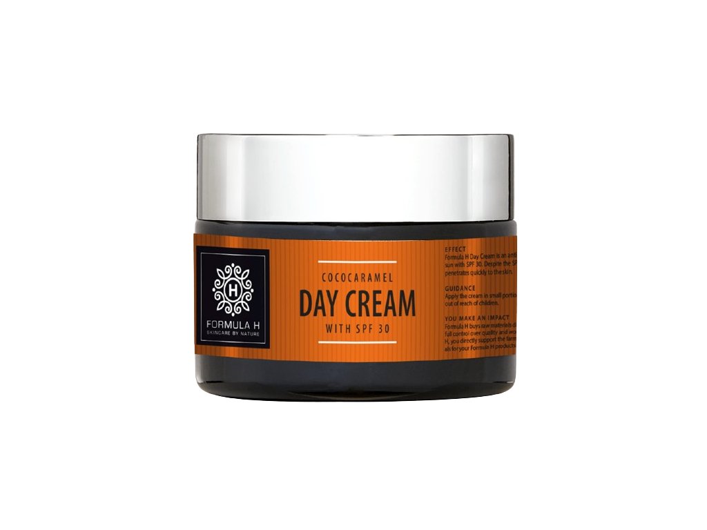 Přírodní, veganský denní krém s ochranným faktorem 30 od Formula H obsahuje kromě účinných látek proti UVA a UVB záření také kolagen, vitamín E, Omega 3 + 6. Mnoho dobrých účinků krému je způsobeno obsahem bílého řepkového oleje, který spolu s olivovým olej přispívá k zachování vlhkosti a Wild Yam (Dioscorea villosa), který spolu s kolagenem vytváří efekt proti stárnutí. Sójové boby dodávají důležité minerální látky.