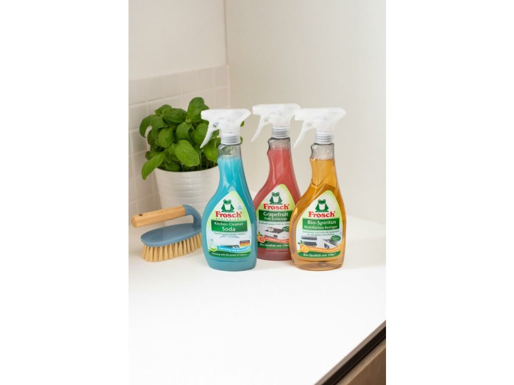 Obsah všech čisticích a pečujících prostředků Frosch je v přírodě snadno biologicky odbouratelný a nezanechává po sobě ekologickou stopu. Obaly jsou vyrobeny z opětovně recyklovatelného materiálu tak, aby nevznikal odpad.