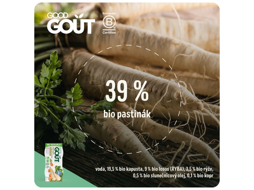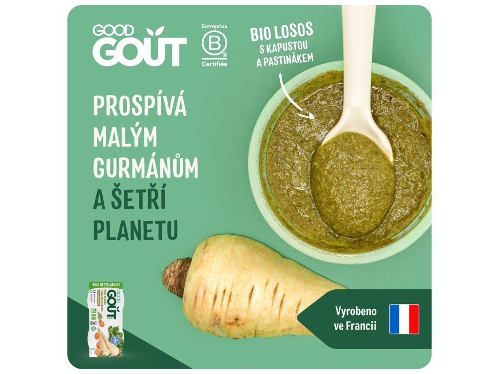 Good Goût je francouzská značka zaměřená organických potravin pro nejmenší i starší děti. Good Goût je zaměřená na používání vysoce kvalitních surovin To zahrnuje ovoce, zeleninu a obiloviny, které jsou pěstovány bez pesticidů a umělých hnojiv. Produkty Good Goût jsou navrženy tak, aby poskytovaly vyváženou výživu, která splňuje potřeby rostoucích dětí. Obsahují důležité živiny, vitamíny a minerály nezbytné pro zdravý vývoj.