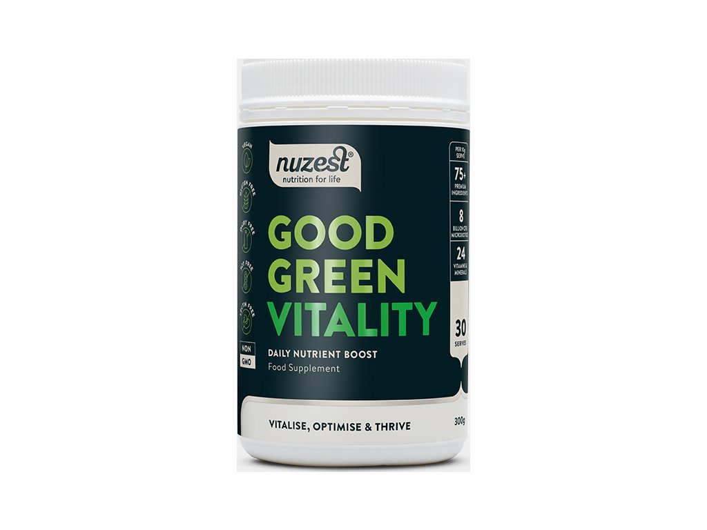 Good Green Stuff vyspěl v Good Green Vitality. Má větší vliv na mikrobiom a podporu imunity a kognitivních funkcí. Množství probiotik je zvýšené na 8 miliard CFU/1 dávku.