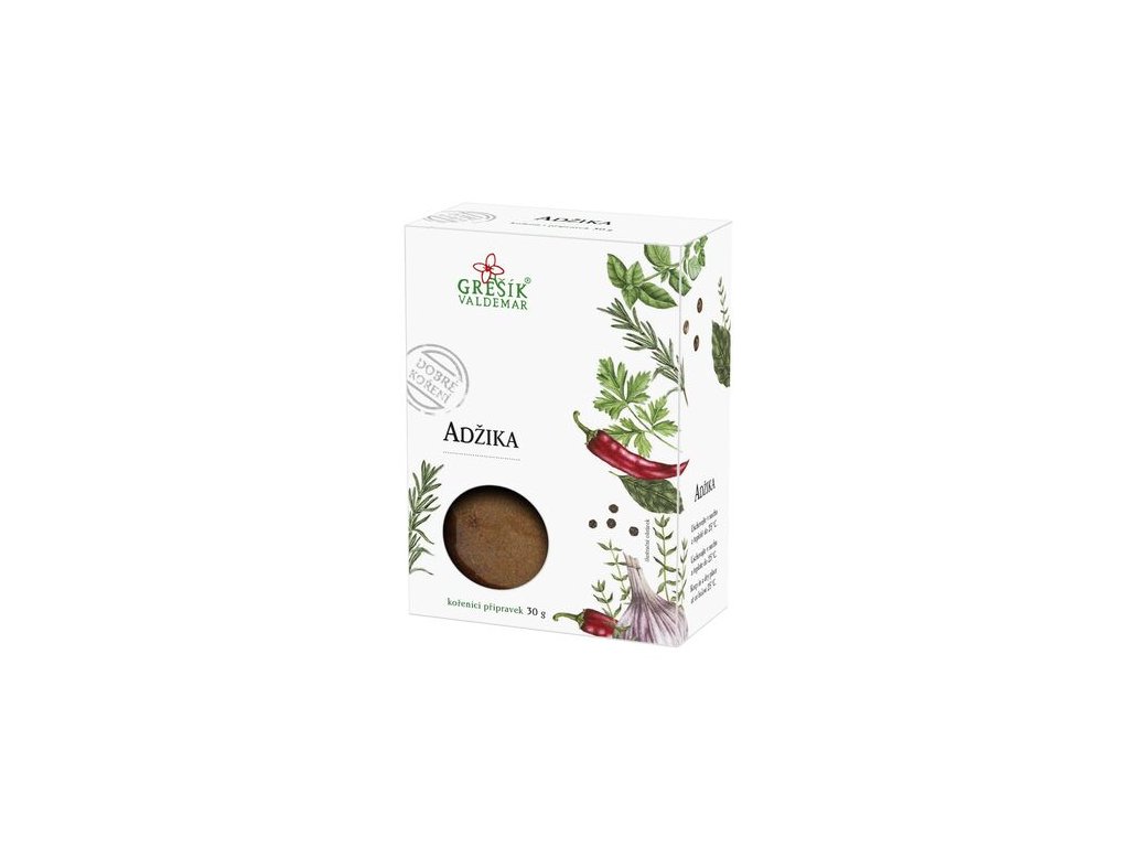 Adžika je kavkazské, aromatické, ne příliš ostré koření, vhodné na dušená a pečená masa, grilování kuřat a do masových směsí.