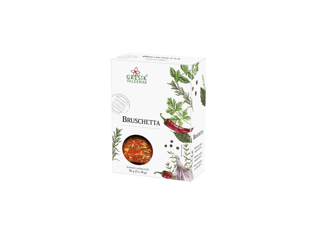 Opečený chléb potřete olivovým olejem a posypte Bruschettou.