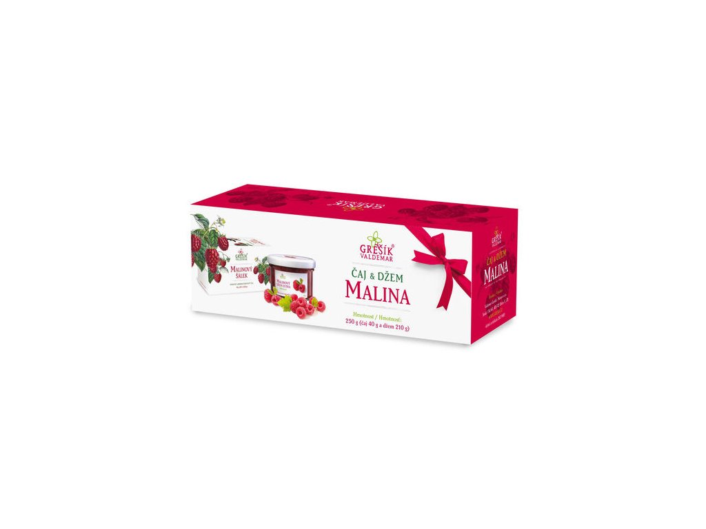 Obsahuje: Ovocný čaj Malinový šálek 20 n.s. a Malinový džem extra Speciální 210 g