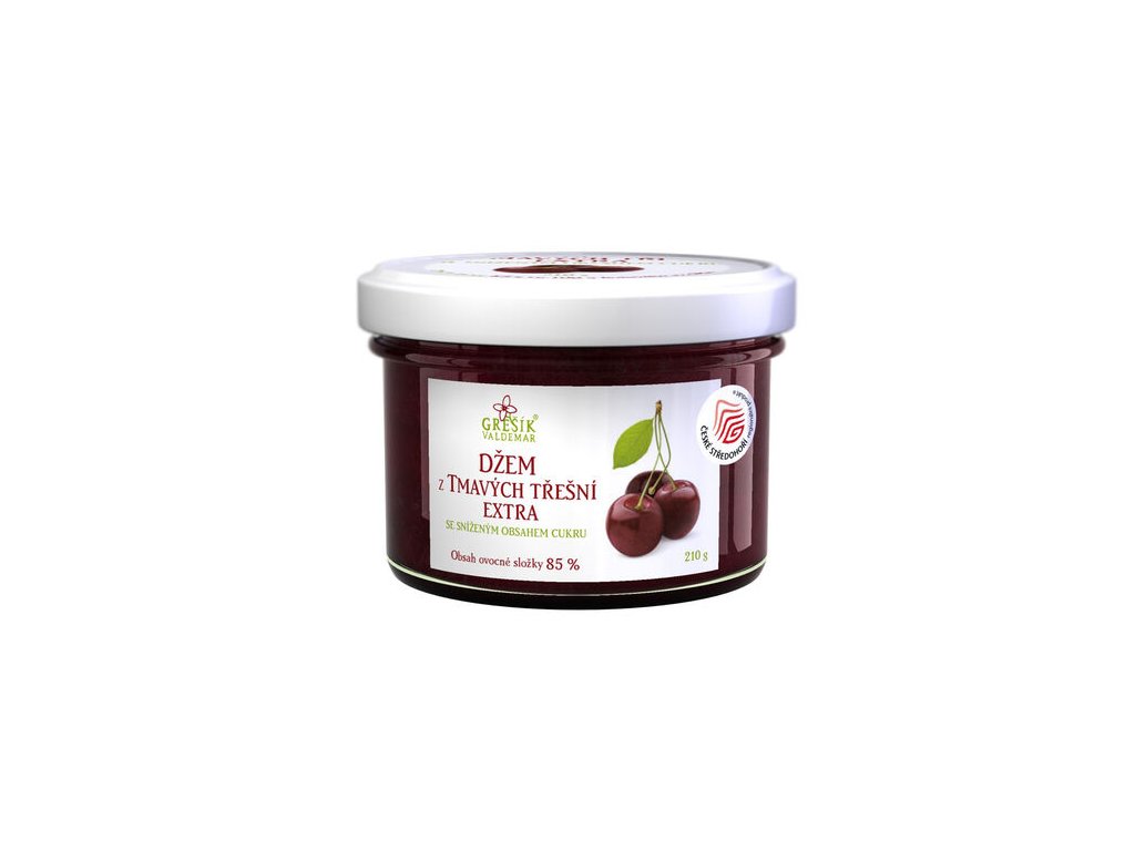 Džem z Tmavých třešní extra Se sníženým obsahem cukru 210 g GREŠÍK