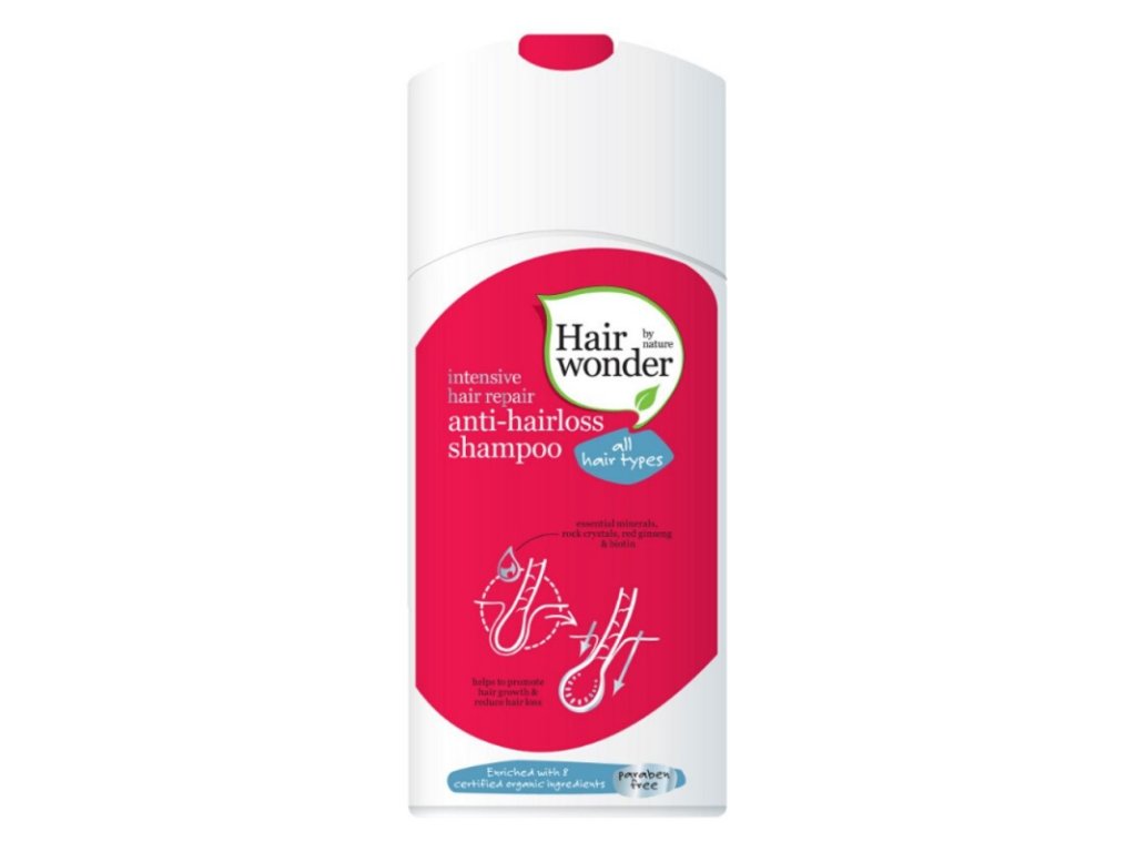 Posilující šampon s důležitými minerály, červeným ženšenem a biotinem, které vyživují vlasové kořínky, podporují vlasový růst a omezují vypadávání vlasů. Díky speciální kombinaci 8 bylin v bio kvalitě jsou vlasy již po několikerém použití silnější, pružnější a bohatší. Hairwonder Šampon proti vypadávání vlasů vlasy posiluje, dodává jim objem a hydrataci. Šampon je vhodný pro každý typ vlasů. Lepšího výsledku docílíte při současném používání Hairwonder Regenerační emulze proti vypadávání vlasů.