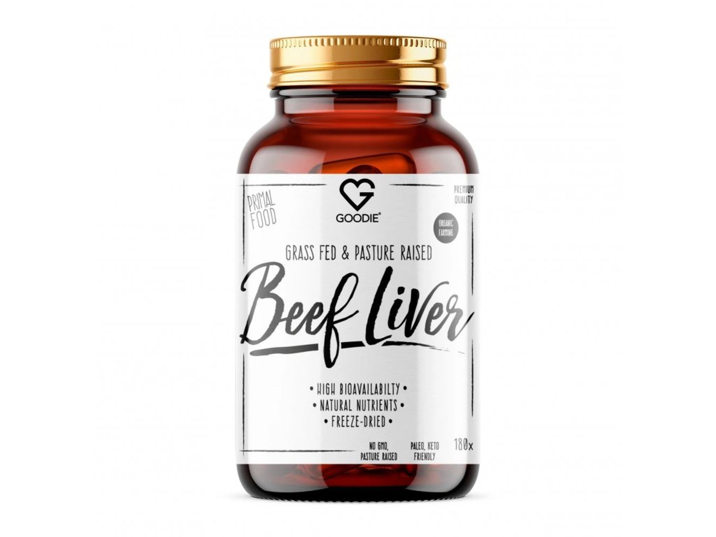GOODIE Hovězí játra - mrazem sušená - volný chov - organické BIO zemědělství - kapsle 180 ks