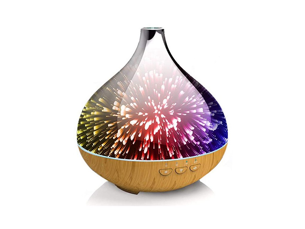Aroma difuzér přemění vodu na jemnou vodní páru, přidáte-li pár kapek esenciálního oleje pomocí působením ultrazvuku se rozloží jemné mikročástice, které provoní váš byt. Na výběr je 9 barev LED osvětlení, díky kterým dosáhnete chromoterapeutického účinku (terapie pomocí barevného spektra).