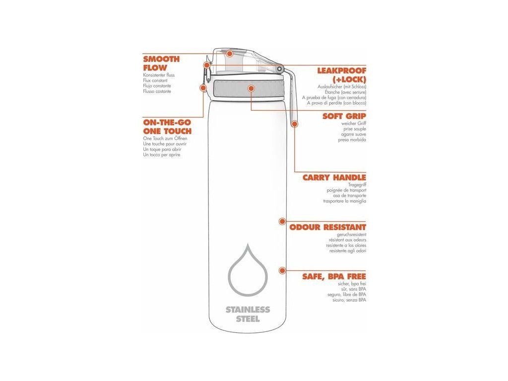 Láhev se snadno udržuje čistá, protože veškeré díly jsou snadno přístupné a omyvatelné. Doporučujeme pouze ruční mytí.