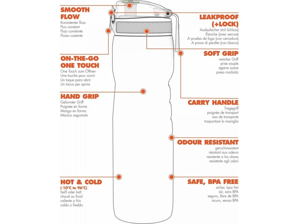 Lahve Ion 8 jsou opatřeny unikátním otevíracím systémem One Touch. Tento systém chrání pítko, neumožňuje tekutině protéci ven a navíc jej lze snadno otevřít jednou rukou, což oceníte v mnoha situacích.
