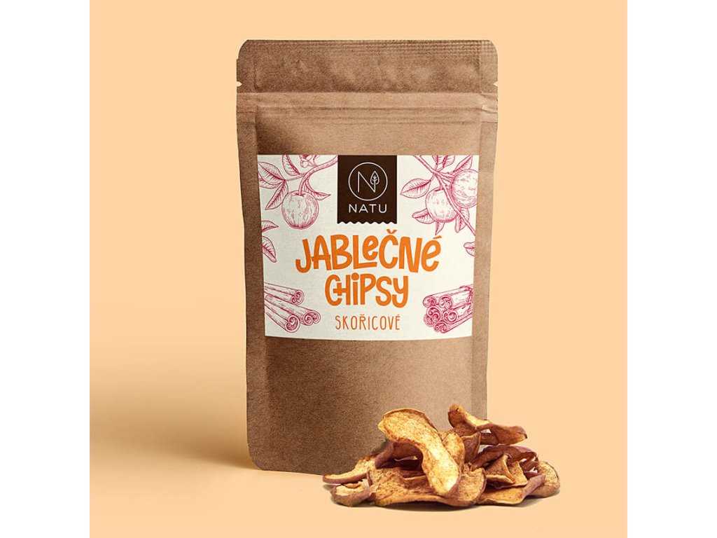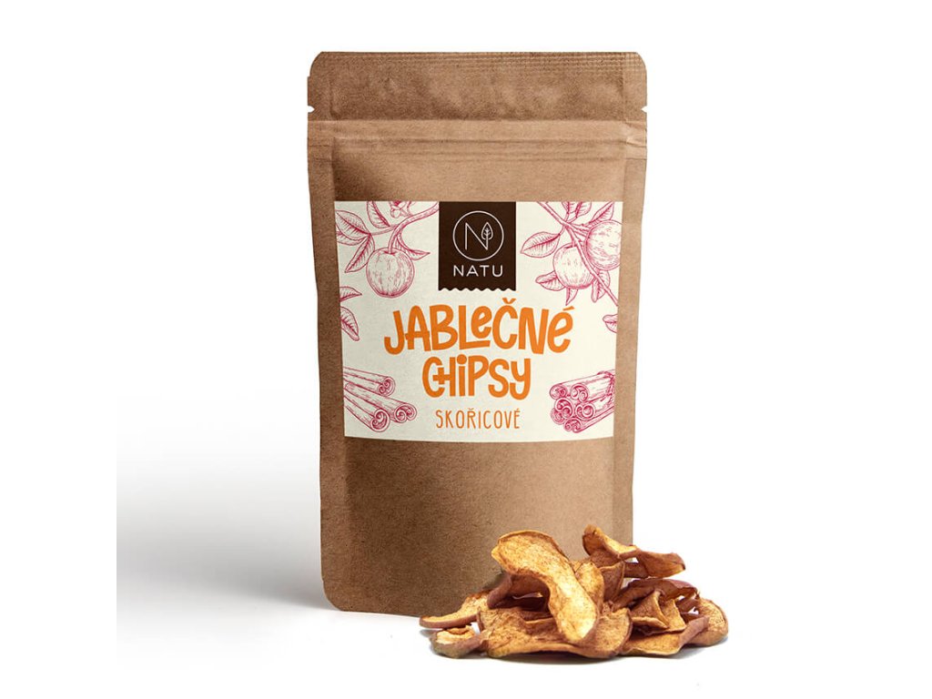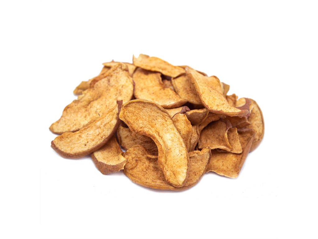 Sušená jablka v trochu jiné podobě než je znáte. Křupavá, slaďoučká a voňavá po skořici. K sušení se vybírají pouze zralá jablka, proto mají jablečné chipsy úžasně sladkou chuť i bez přídavku cukru a zachovávají si maximum živin. Plátky jablek obsahují i výživnou slupku a vynikají vysokým obsahem vlákniny.