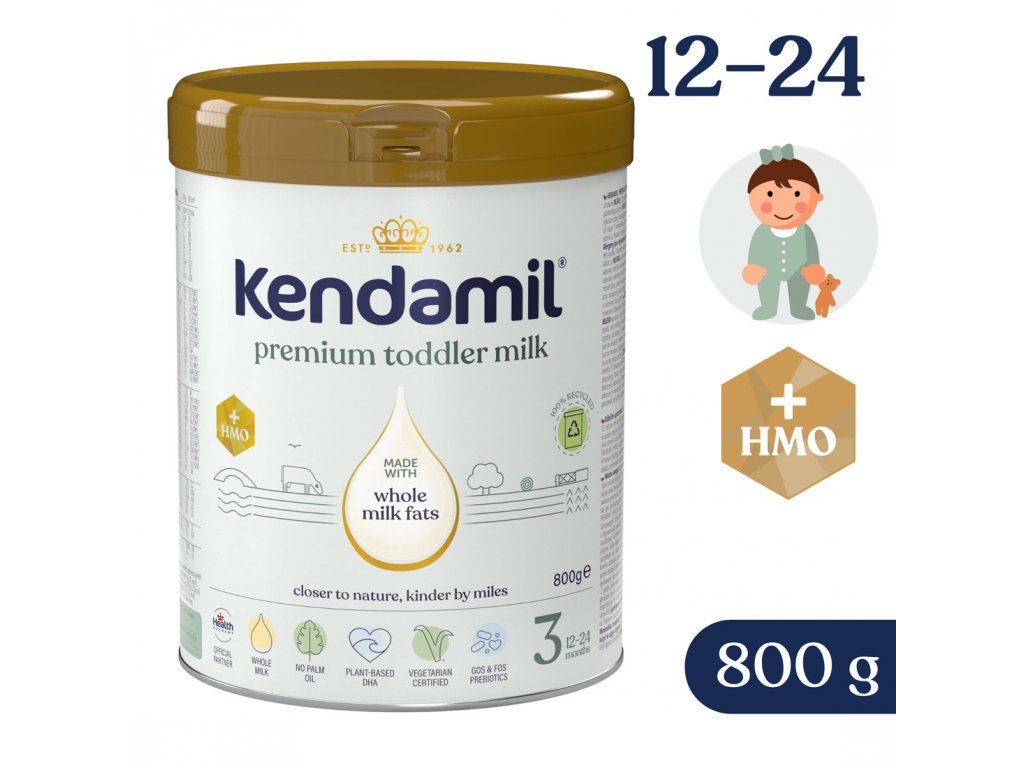 Důležité upozornění: Kojení je nejlepší způsob výživy vašeho dítěte. Kendamil Premium 3 HMO+ je určeno pro výživu malých dětí od ukončeného 12. měsíce a mělo by tvořit jen součást jejich smíšené a vyvážené stravy. Při krmení z láhve zabraňte nepotřebnému prodlužování kontaktu dudlíku se zoubky, zvyšuje riziko vzniku zubního kazu. Dbejte na ústní hygienu svého dítěte, zvláště před spaním. Dodržujte pokyny pro přípravu, krmení a skladování, jinak ohrozíte zdraví svého dítěte. Není určeno pro děti mladší 12 měsíců.