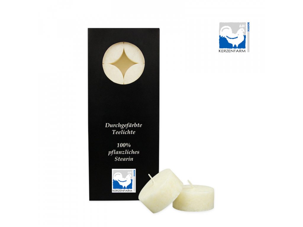 Čajové svíčky, Ivory Kerzenfarm jsou vyrobené ze 100% rostlinného stearinu z palmového vosku. Narozdíl od klasických parafínových svíček neprodukují saze a neuvolňují do vzduchu škodlivé látky.