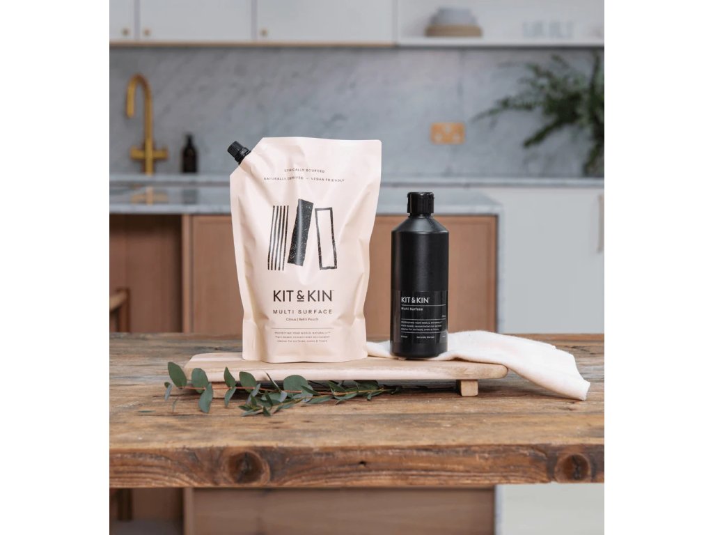 Víceúčelový čistič Kit & Kin je zcela netoxický a je vyroben ze 100% přírodních surovin. Tento oblíbený čisticí prostředek určený pro potravinářské účely se může bez obav stát vaším společníkem při úklidu po vaření.