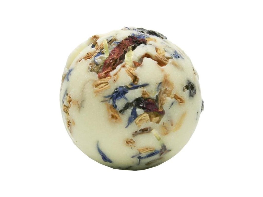 Přírodní krémová kulička s lístky sušených květin promění koupel v nevšední zážitek. Nechte svou mysl i pokožku hýčkat mandlovým olejem, kakaovým a bambuckým máslem.