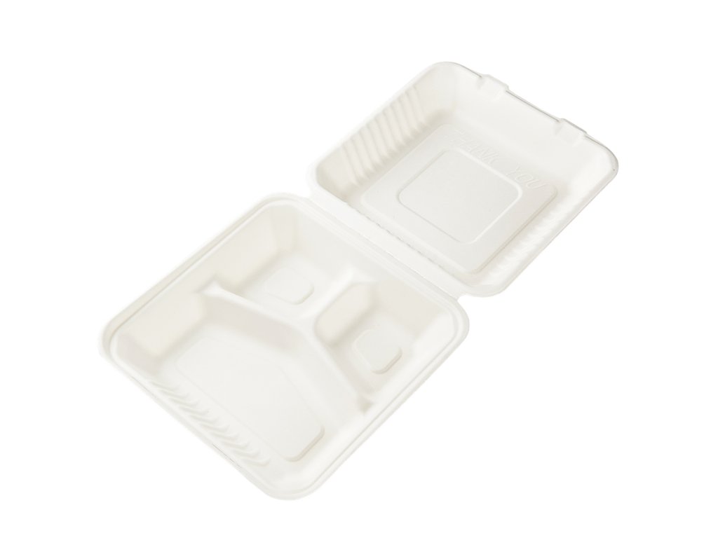 Menu box z cukrové třtiny 200x210x85 mm 3-dílný bílý bal/50 ks