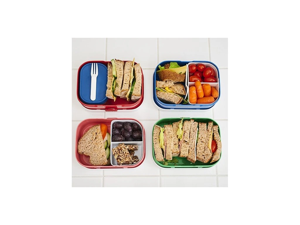Do MEPAL Svačinového boxu Campus se snadno vejdou čtyři sendviče nebo pro větší rozmanitost můžete použít přiložený bento box, který vám obědový box rozdělí na čtyři přihrádky. Díky dvěma odděleným přihrádkám udrží bento vždy vše v krabici na oběd úžasně čerstvé. Praktický svačinový box si rychle oblíbíte vy i váš malý strávník.
