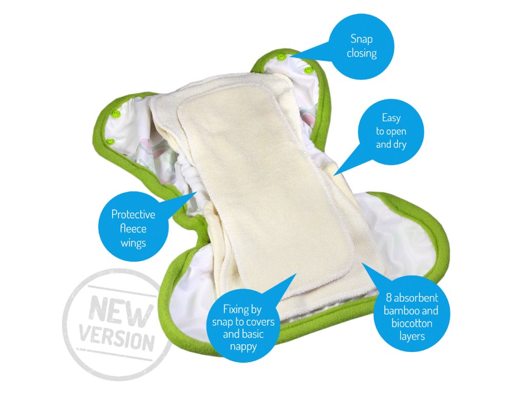 SIO basic START NOVÁ VERZE jednoduše nacvaknete do jednovelikostních svrchních kalhotek a získáte látkovou plenu vše v jednom.