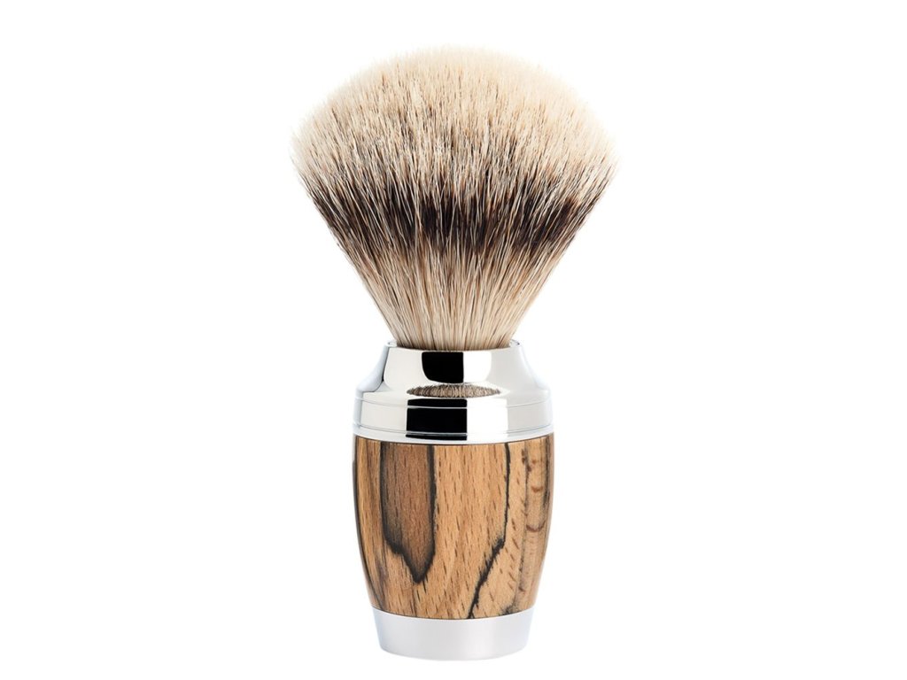 Mühle Střední štětka na holení STYLO z jezevčích štětin (silvertip badger, žíhaný dub), 1ks