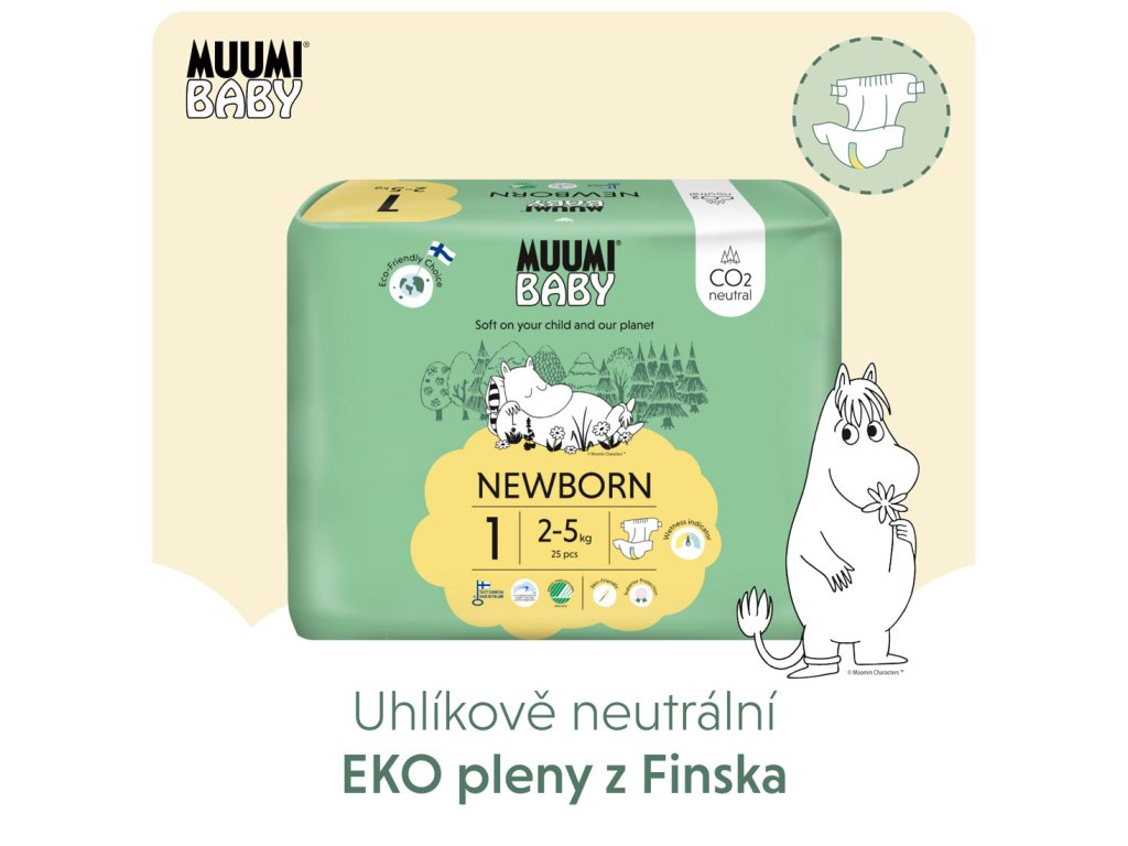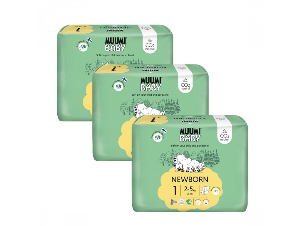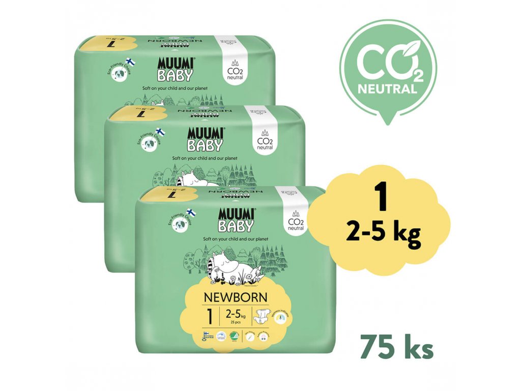 Muumi Baby 1 Newborn 2-5 kg (75 ks), měsíční balení eko plen