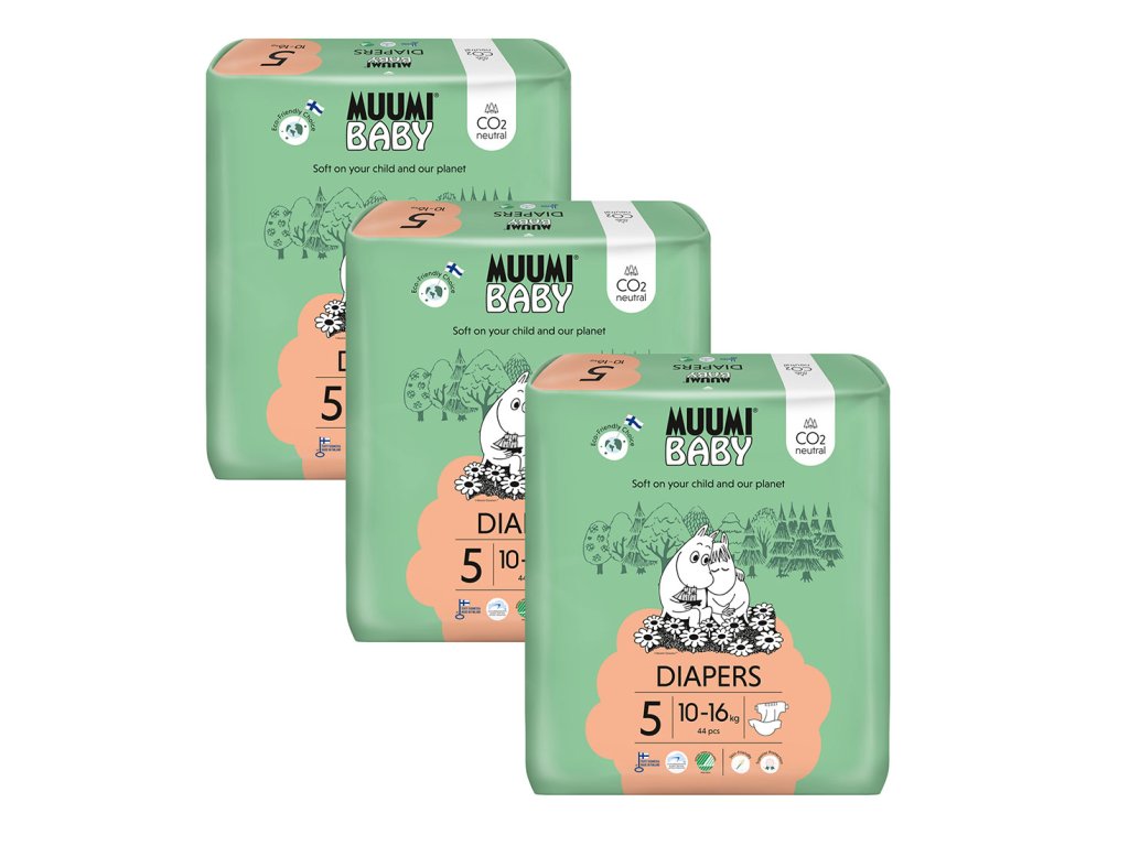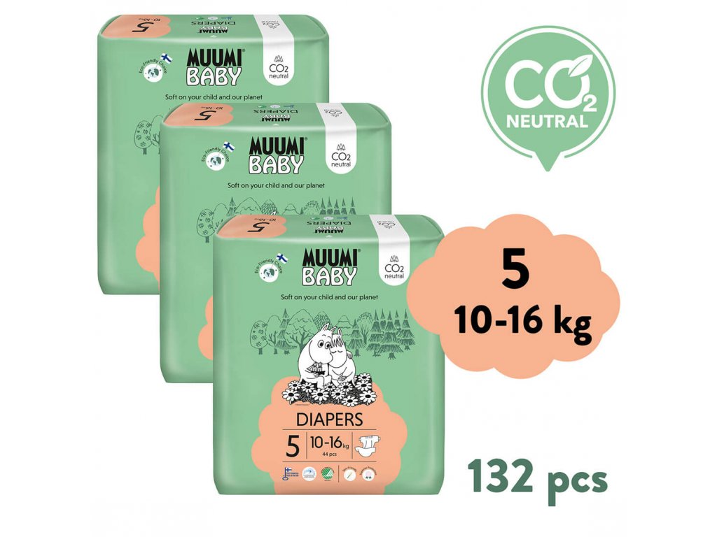 Muumi Baby 5 Maxi+ 10–16 kg (132 ks), měsíční balení eko plen