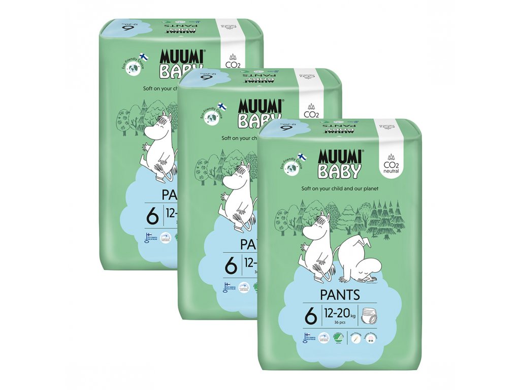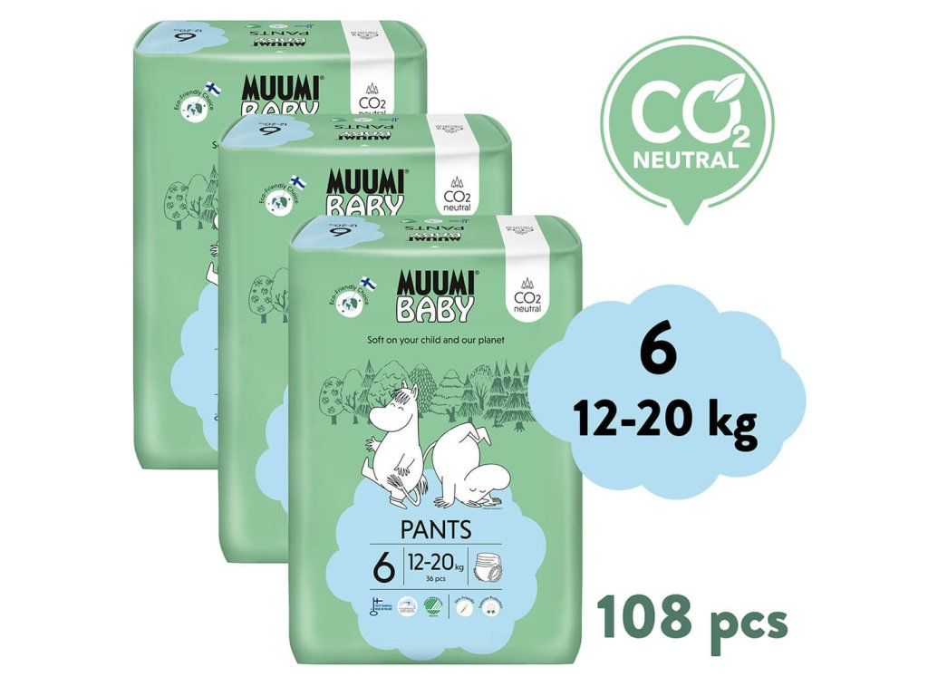 Muumi Baby Pants 6 Junior 12-20 kg (108 ks), měsíční balení kalhotkových eko plen