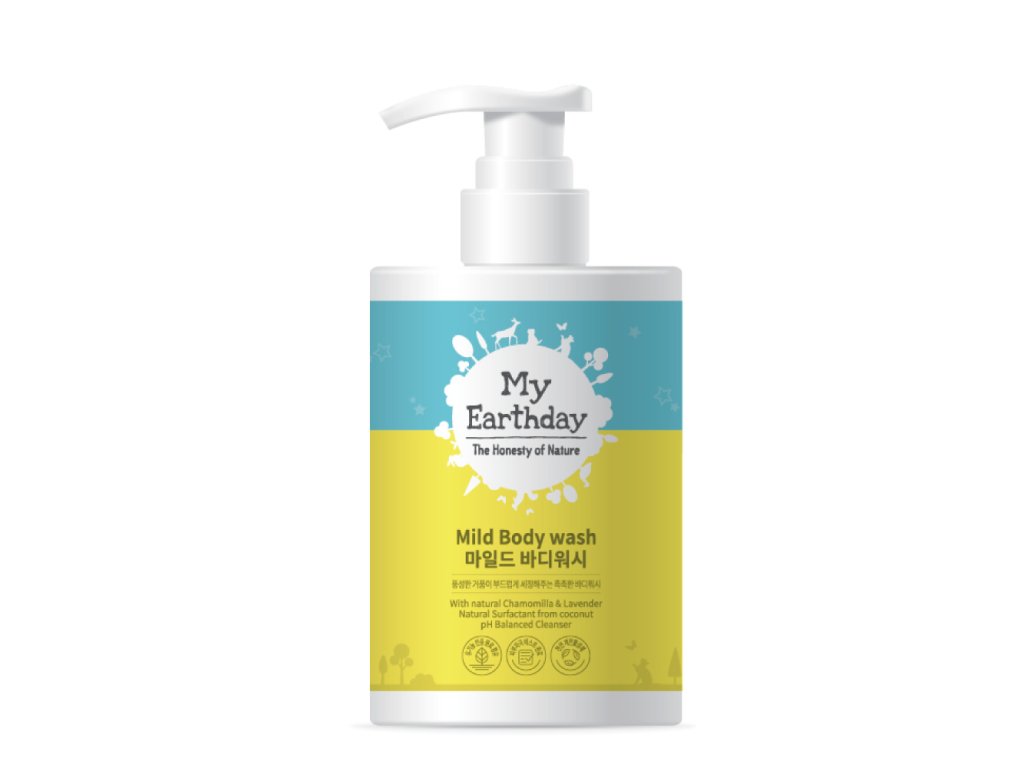 Dětský tělový gel MyEarthday Mild Body wash je určený pro jemnou dětskou pokožku, zejména pro děti s velmi citlivou pletí a alergiky. Má pH nejbližší k pH pokožky, tedy 5,5. Odstraňuje nečistoty a pot a zanechává pokožku hydratovanou a jemnou. Neobsahuje žádné chemické ani škodlivé ingredience, pouze organické přírodní složky, kterým můžete věřit. Produkt využívá jako přírodní čistící složku výtažek z kokosových ořechů. Při testování německým Derma Test získal tento produkt tu nejlepší známku, tedy nejnižší stupeň podráždění kůže