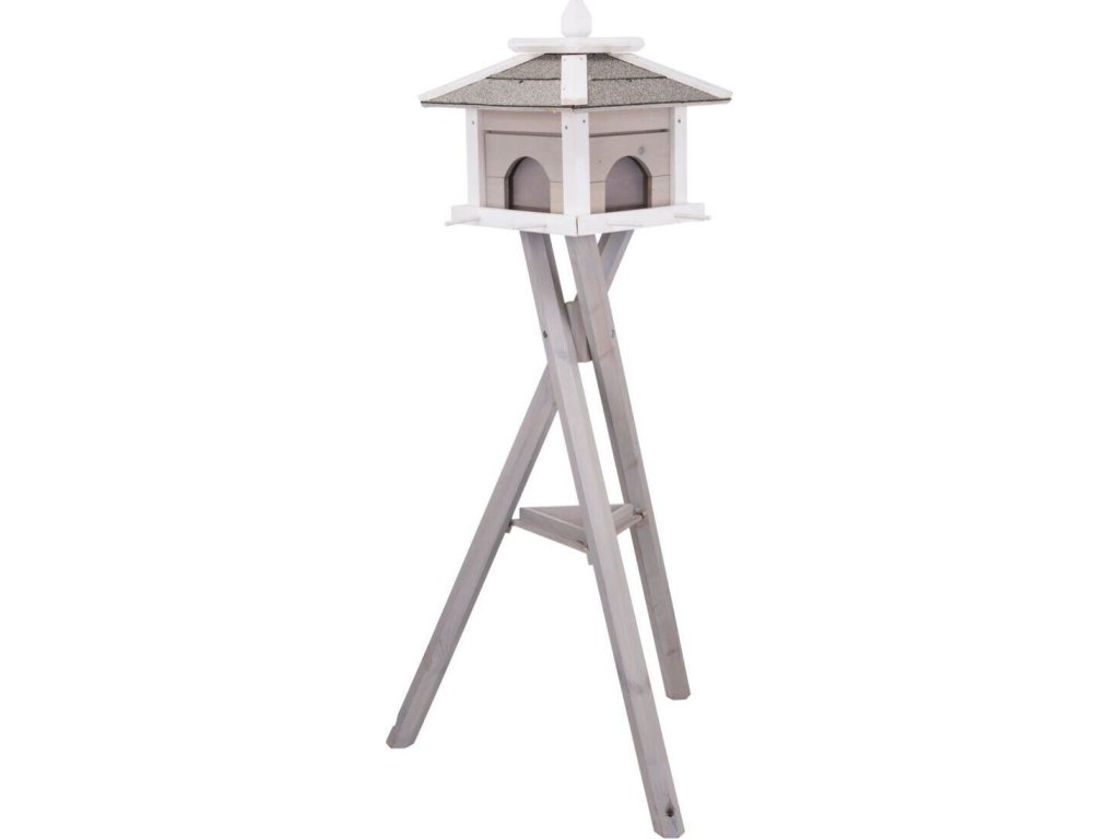 NATURA venkovní krmítko na trojnožce, 46 × 35 × 46 cm/ 1,36 m, borové dřevo, šedá/bílá