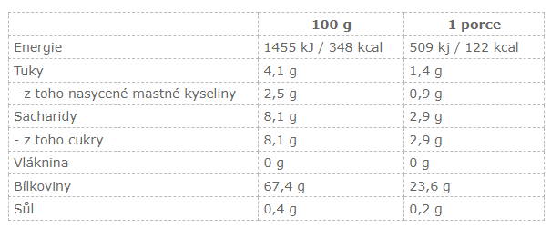 - Vysokým obsahem bílkovin (24 g v jedné porci)