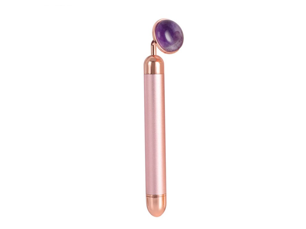 Elektrické masážítko má kovovou rukojeť, je proto velmi odolné a téměř nerozbitné. Masážní hlavice je vytvořena z přírodního minerálu (amethyst) a díky mikrovibrační technologii usnadňuje vstřebávání kosmetických produktů do pokožky.
