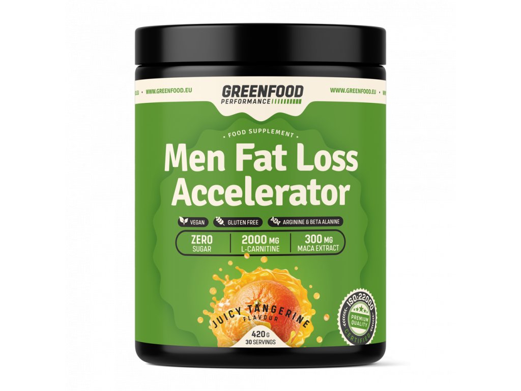 Extrémně silná směs pro každého muže, který má chuť bojovat s přebytečnými kily. Složení výrobku bylo "ušito na míru" mužskému metabolismu a potřebám mužského těla s ohledem i na poměr svalů a tuků, který je v mužském těle. Při užívání Men Fat Loss Accelerator doporučujeme zvýšit tělesnou aktivitu alespoň na 45-60 min, alespoň 4 dny v týdnu. Není nutno si vždy pod tělesnou aktivitou představit, běh nebo cvičení v posilovně, ale doporučujeme i rychlou chůzi, která je naprosto dostatečná, pokud bude vykonávána s patřičnou intenzitou. Vynikající nápoj bez cukru s příchutí šťavnatého ovoce. Men Fat Loss Accelerator vyhledávají muži orientovaní na: - Zdroj energie - Stimulant libida - Zvýšení každodenní vitality - Kontrolu tělesné hmotnosti - Podpoření fyzického i duševního výkonu
