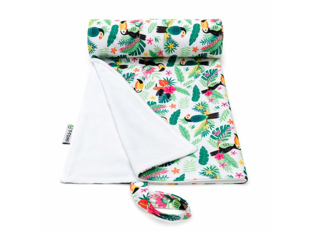 100% polyester s PUL zátěrem dotyková vrstva – kojenecký plyš rozměr 50 x 70 cm praktické ucho s patentkou všestranné využití moderní design
