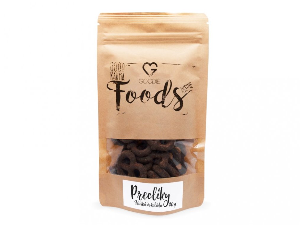 Nevíte, jestli máte chuť na sladké nebo slané? Tohle dilema hravě vyřeší chutné a křupavé preclíky v hořké čokoládě. Jemné těsto z vysoce kvalitních surovin se skvěle doplňuje s intenzivní aromatickou chutí hořké čokolády vyráběné metodou bean to bar (od bobu po tabulku). Čokoládová poleva, která dokonale vyvažuje slanost preclíků, není slazená bílým rafinovaných cukrem, ale sušenou třtinovou šťávou. V čistě veganském složení bez laktózy nenajdete žádnou ingredienci navíc, vytříbená chuť, kvůli které u jednoho preclíku nezůstanete, je dílem pouze pečlivého výběru surovin, propracované receptury a poctivé české výroby.