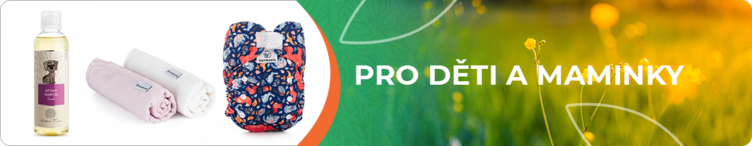 Děti si zaslouží jen to nejlepší, souhlasíte? Pro maminky pak nejlepší znamená zdravé, bezpečné a pohodlné. U miminek jde nejdřív ze všeho o plenky. Nabízíme výhradně ty látkové, protože na rozdíl od jednorázových plen jsou prodyšné, bez chemie a ekonomicky výhodnější – a také nezatěžují životní prostředí zbytečnými 250 kg spotřebovaných surovin. K látkovým plenám se hodí přírodní prací prostředky a skvěle s nimi ladí také přírodní dětská kosmetika. Protože myslíme i na pohodlí malých jedlíků, v e-shopu najdete ekologické láhve a zdravotně nezávadné nádobí. A také dětské ložní prádlo pro dobrý spánek, aby maminky měly trochu času pro sebe.