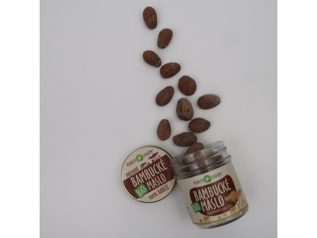 Nerafinované Bio Bambucké máslo je jedinečné tím, že pochází ze vzácné odrůdy máslovníku afrického (Vitellaria Nilotica), také zvaný strom karité nebo shea. Máslovník roste v pásmu savan ve východní Africe a ve srovnání s běžně dostupným máslovníkem ze západní Afriky (Vitellaria Paradoxa) obsahuje mnohem více prospěšných látek. Karité plodí jednou ročně, a to až po 15 letech svého života. Jeho plody dozrávají v krátkém období od dubna do června. Pod skořápkou plodů je ukryto jádro s vysokou nutriční hodnotou a vitamíny, z něhož získáváme bambucké máslo. Pěstování stromů karité i samotná výroba bambuckého másla je koncipována tak, aby příznivě ovlivňovala přirozené biorytmy místní fauny a flory a nezatěžovala životní prostředí.
