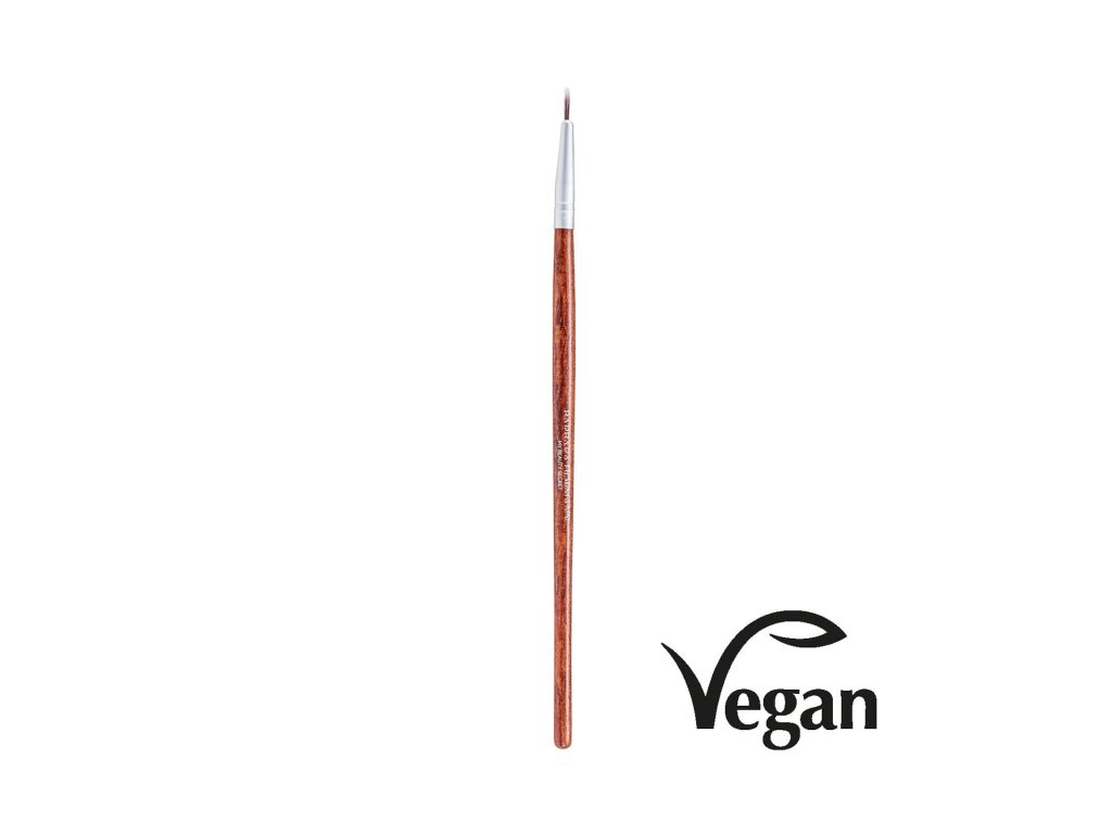 Zkosený syntetický štětec na oční linky s luxusní rukojetí ze sekvojového dřeva precizně aplikuje gelové i kompaktní pudrové produkty.