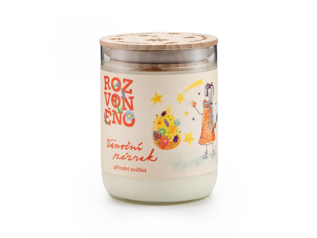 Rozvoněno Vonná svíčka Vánoční zázrak ve sklenici z lahve od vína, 300 ml