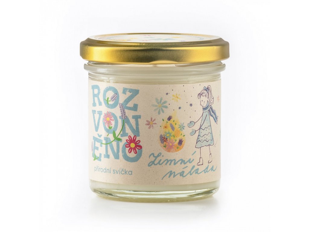 Rozvoněno Vonná svíčka - Zimní nálada - s pomerančem, hřebíčkem a skořicí, 130 ml