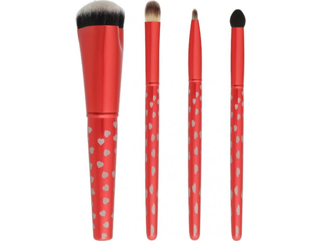Sada štětců My sweetheart obsahuje štětec na make-up, oční stíny, rtěnku a jemnější a přesnější aplikátor na oční stíny.