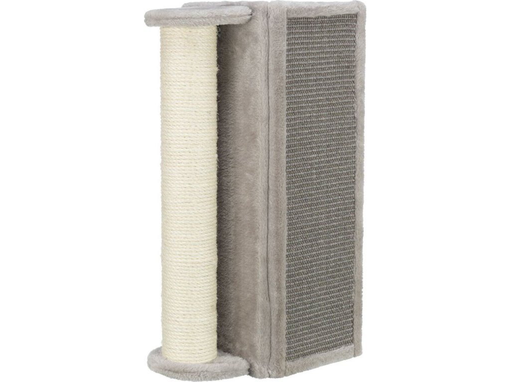 Škrabací rohová deska se sloupkem, s plyšovým potahem a sisalovou plochou pro škrábání.