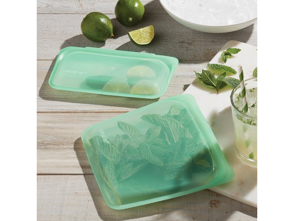 Silikon (Platinum) je vyrobený z přírodních prvků písku a kyslíku. Stasher silkon je čistý jako sklo, odolný, netoxický a tepluvzdorný. Je tak zdravější alternativou plastu. Silikonový sáček se může používat nekonečněkrát bez hromadění se na skládkách a v oceánech. Jednoduché řešení pro vás i planetu.
