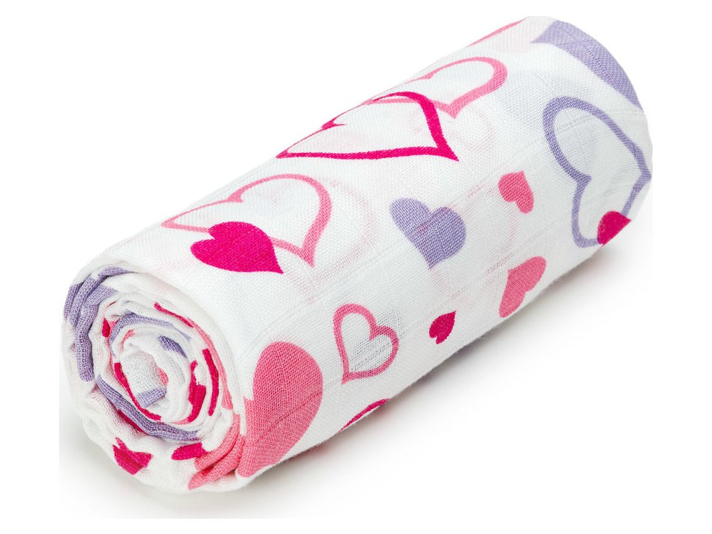 T-TOMI BIO Velká bambusová osuška Hearts/ Srdce, 120x120cm